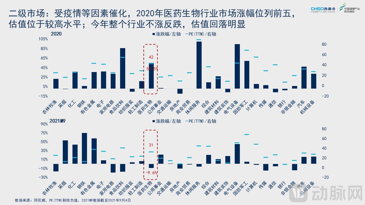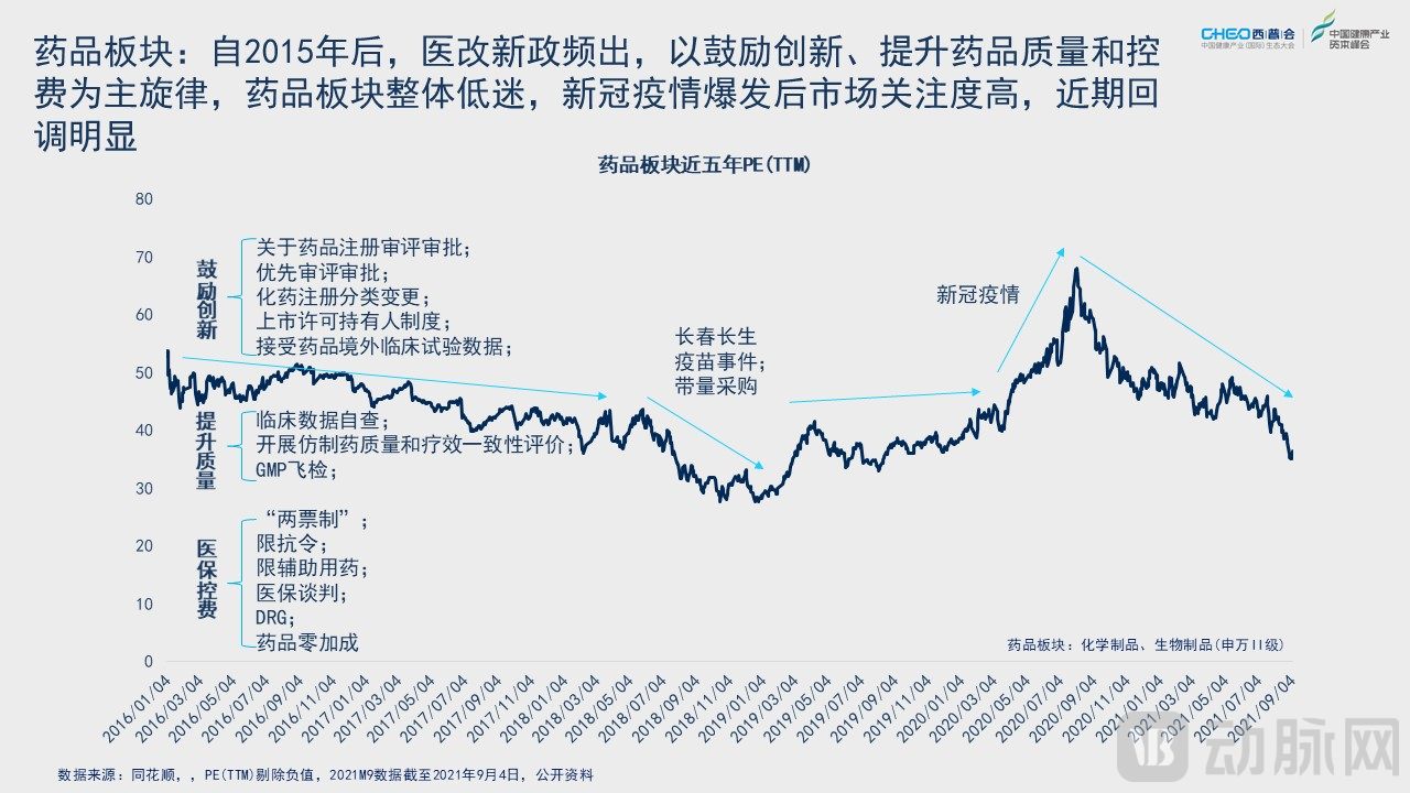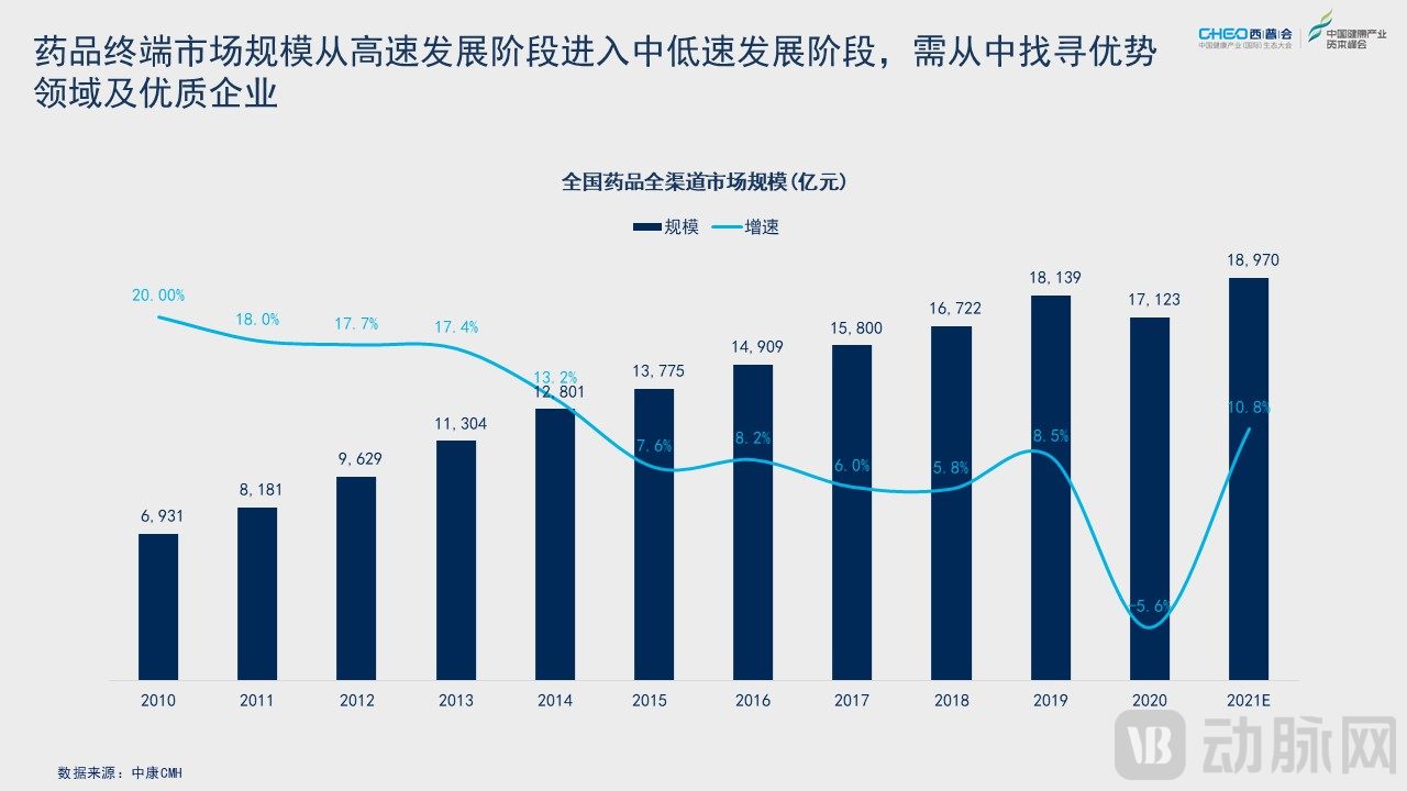 自2015年,我国药品终端市场规模从高速发展阶段(2010-2014年,复合增长率17%)进入中低速发展阶段(2015-2021E,复合增长率5%),但其中细分板块分化明显。暗潮涌动下的生物医药行业实则为板块结构调整,这其中蕴藏着怎样的投资机会?