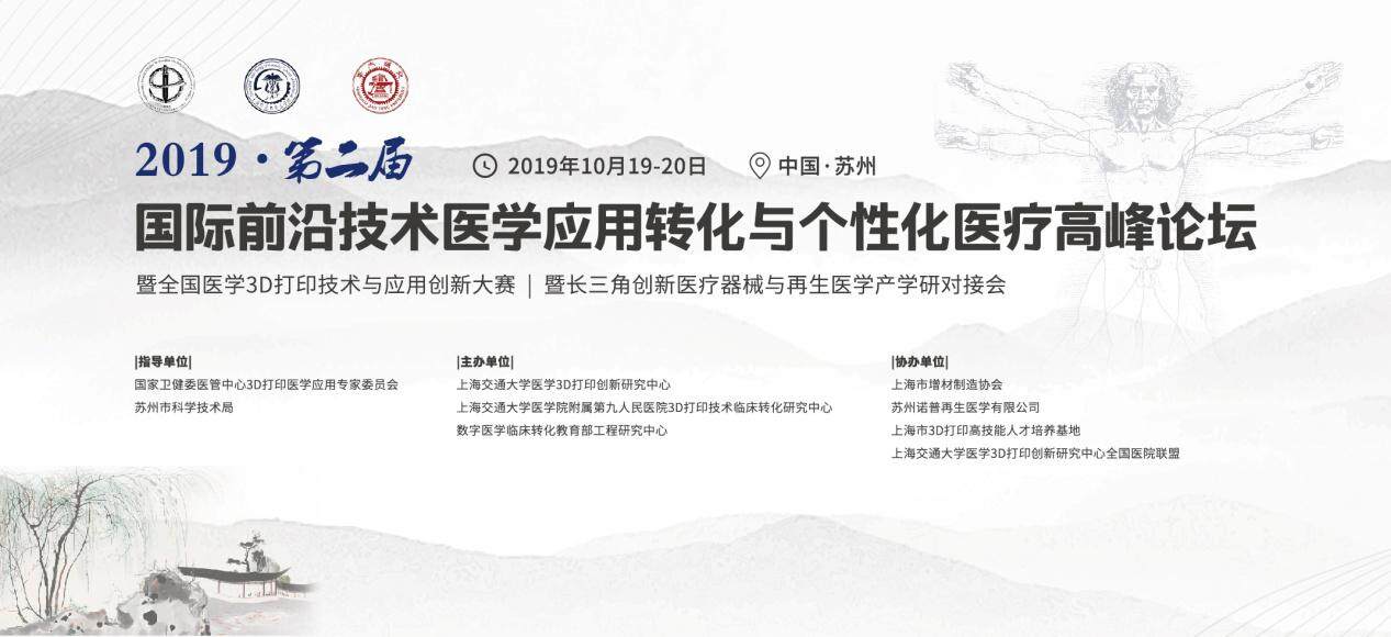 第二届国际前沿技术医学应用转化与个性化医疗高峰论坛暨全国医学3D打印技术与临床应用创新大赛暨长三角创新医疗器械与再生医学产学研对接会