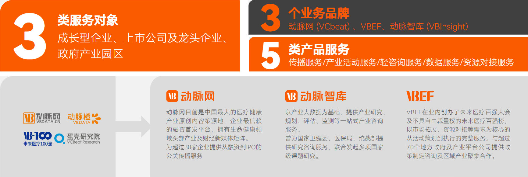 动脉网创立于2014年,是一家用文字构建产业商业案例库、用系统化研究解构产业、用服务推动产业合作与链接的产业信息加速服务平台。为企业、政府产业园区、投资机构及产业链当中的其它机构提供品牌传播、研究咨询、数据监测、资源/项目对接等服务。成立以来,先后获得联想旗下君联资本、BV百度风投、弘晖资本、长嶺资本、一方集团、汤臣倍健旗下为来资本等多家知名投资机构的投资,估值数亿元人民币。经11年对行业的理解,品牌矩阵由“动脉网、VB100、蛋壳研究院、动脉橙”逐渐演变升级为动脉网、VBEF、动脉智库。
