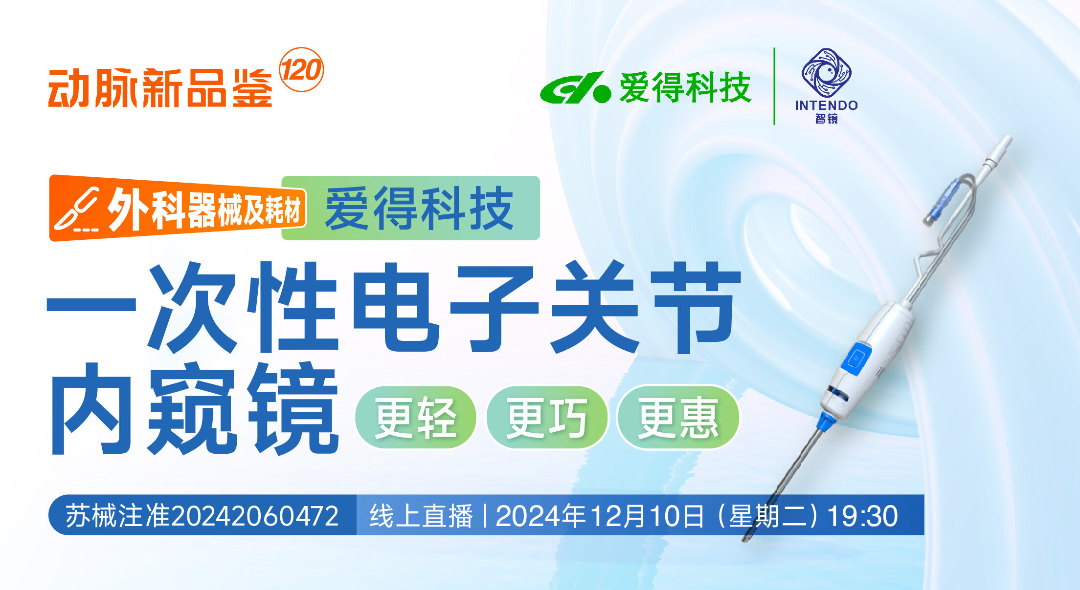 12月10日(星期二)19:30,动脉新品鉴有幸邀请到爱得科技投资者关系总监邬红磊、爱得科技市场总监施建锋、智镜医疗商务总监李臻三位嘉宾带来相关产品推介。