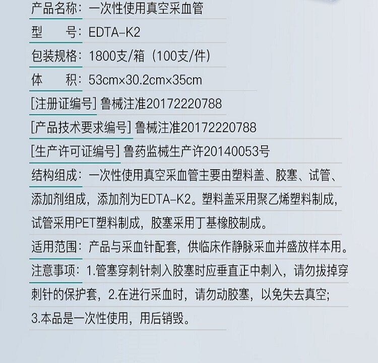 2.在进行采血时,请勿拔动胶塞,以免失去真空;