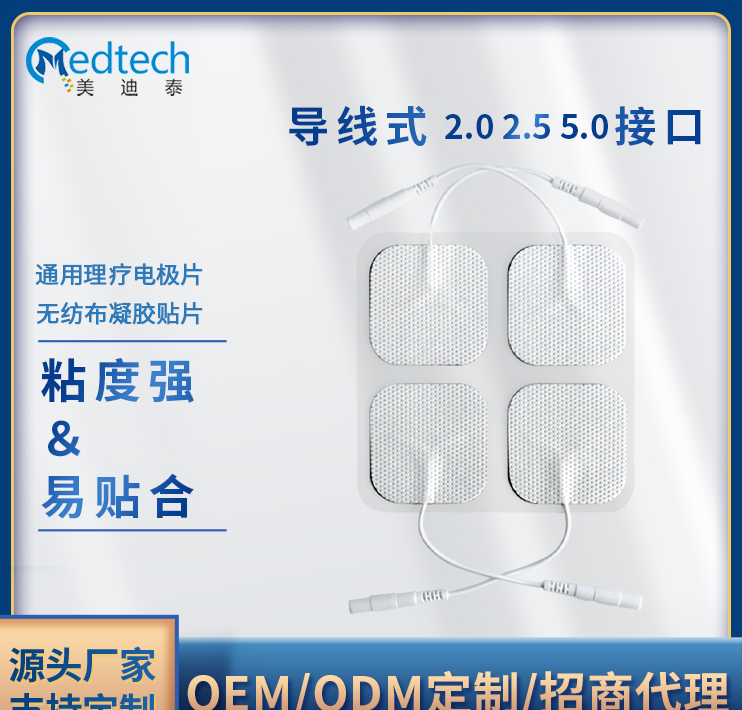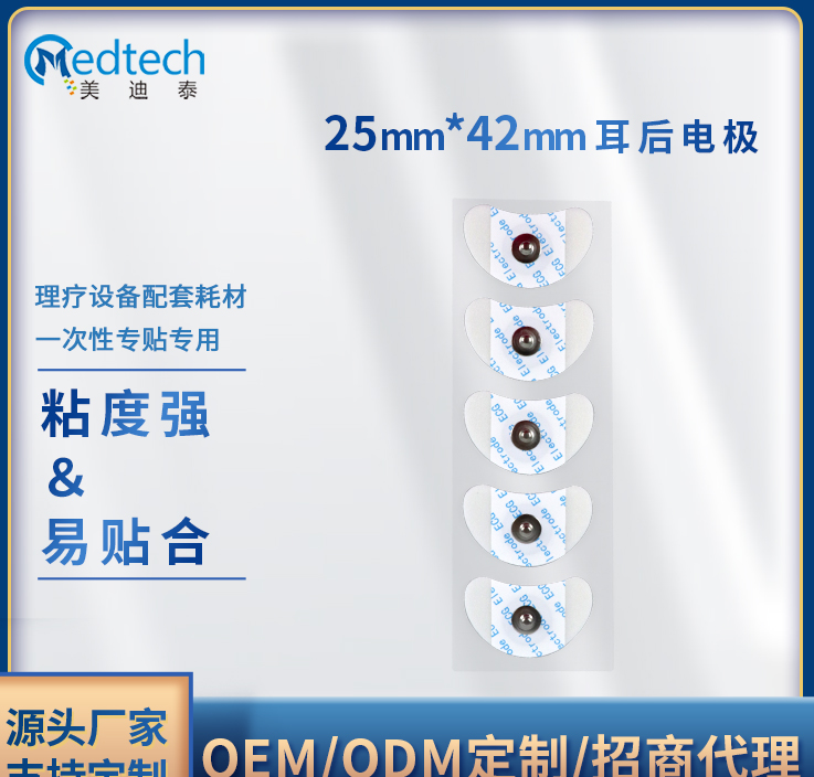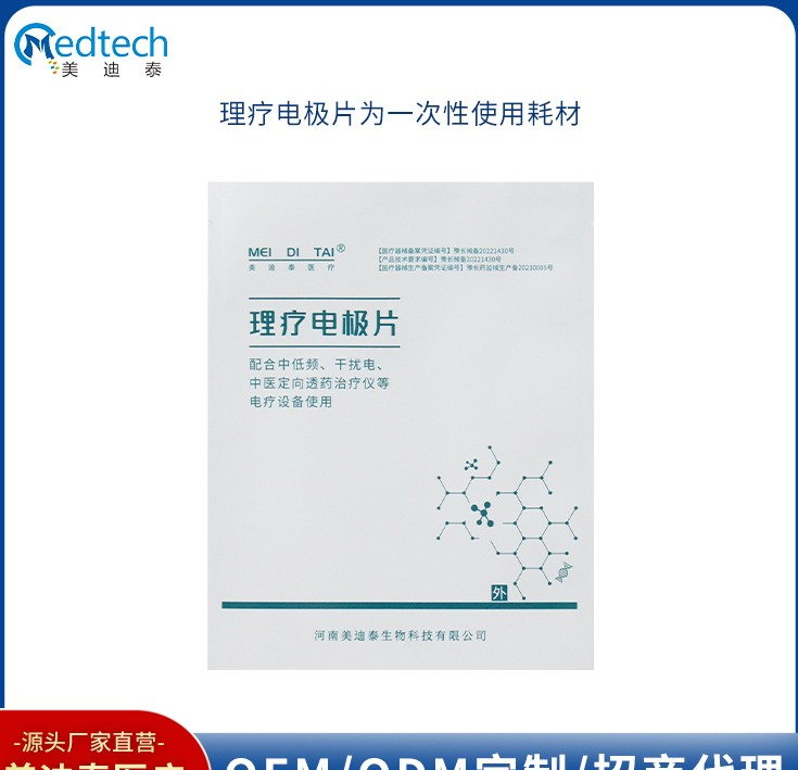美迪泰医疗,专业的理疗电极片制造商,拥有高标准制造厂房,优良的制造工艺,可为客户提供,理疗电极片(铁腕型、铝箔型、双面膏药型、纽扣型、尾巴线等)、凝胶型电极片(尺寸规格),超声耦合贴片,超声治疗固定贴等产品