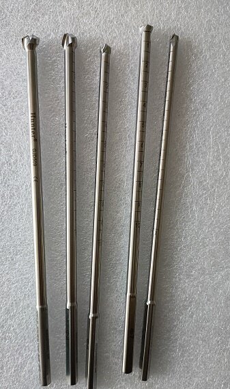 骨科钻:包括各种规格的钻头,用于在骨头上钻孔,以便植入螺钉、克氏针等内固定物,或进行关节镜手术中的一些操作。