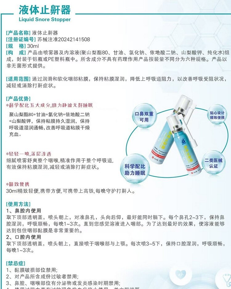 产品名称:液体止鼾器