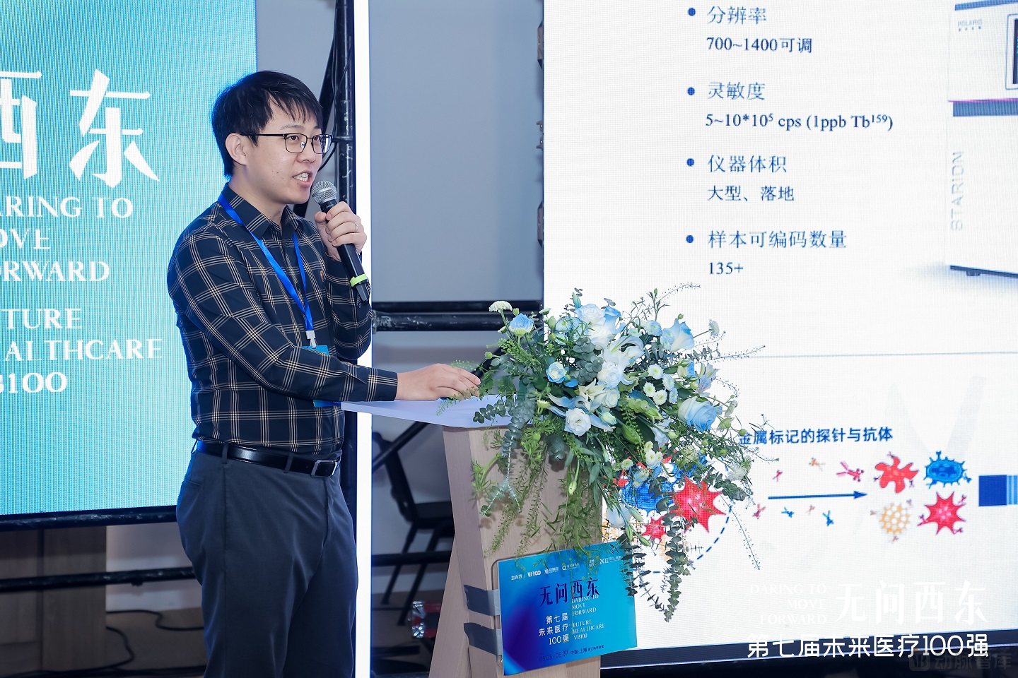 2023年5月6日,在上海张江举行的2023第七届未来医疗100强·个性化诊疗论坛上,宸安生物产品副总裁范雨庆以国内第一家成功研制高性能单细胞质谱平台的宸安生物展开,在展示了Starion星瀚®和Lunarion宵晖™两台设备后,范雨庆简要解释了流式质谱技术原理,并简单介绍了流式技术的发展历程和独特优势。随后,范雨庆重点展示了免疫概述及流式质谱技术多指标检测的临床应用,并指出目前国内流式细胞仪市场约为12亿美元,复合增长率可达30%,可以看出国产流式细胞仪还有很大的增量空间,且多领域专家共识推荐精细免疫分型检测。